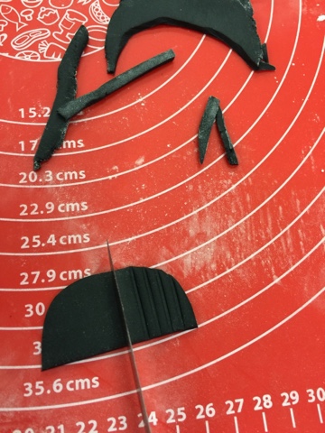 做斗蓬部份:將黑糖皮切成肥胖的新月形